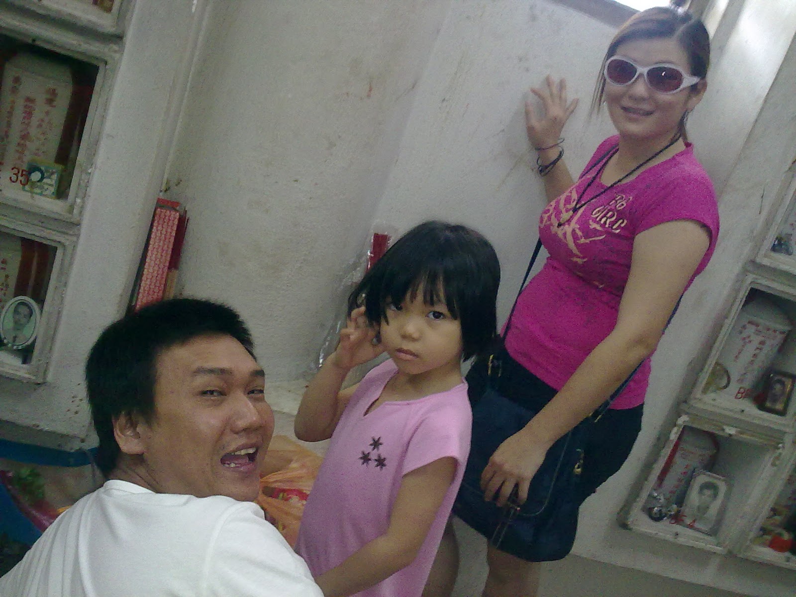 Initially, we did not plan for them to go this year, as it clashed with their music classes. Furthermore, SJ is still considered 'small', where Chinese has a pantang that small kids and pregnant ladies should not attend such event. So, it's been nearly 5-6 years that I had been excused from this, because I had to stay at home to take care of the kids while the others went to do their duties. This year, however, SY insisted that she wanted to pay respect to Ah Kong. After giving it a thought, we decided to depart earlier so that we could still make it for their lessons later. Too bad we didn't make it, due to the heavy traffic. Everyone thought of avoiding the crowd by celebrating much earlier, but too bad 'everyone' has the same thought so we ended up on the queue for longer hours instead. Furthermore, we went on a Sunday where most people were off, so the crowd was not really unexpected.